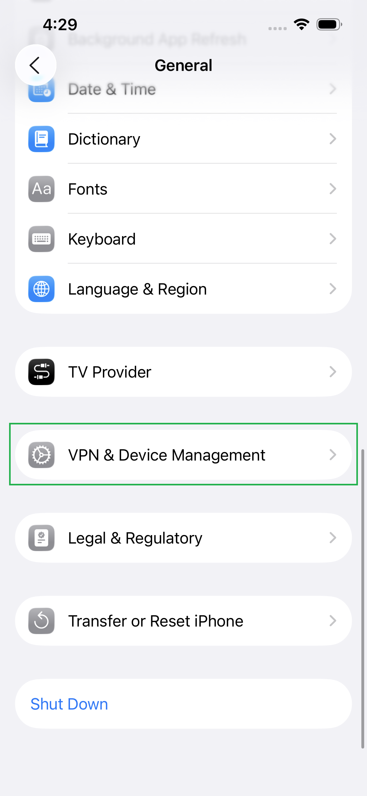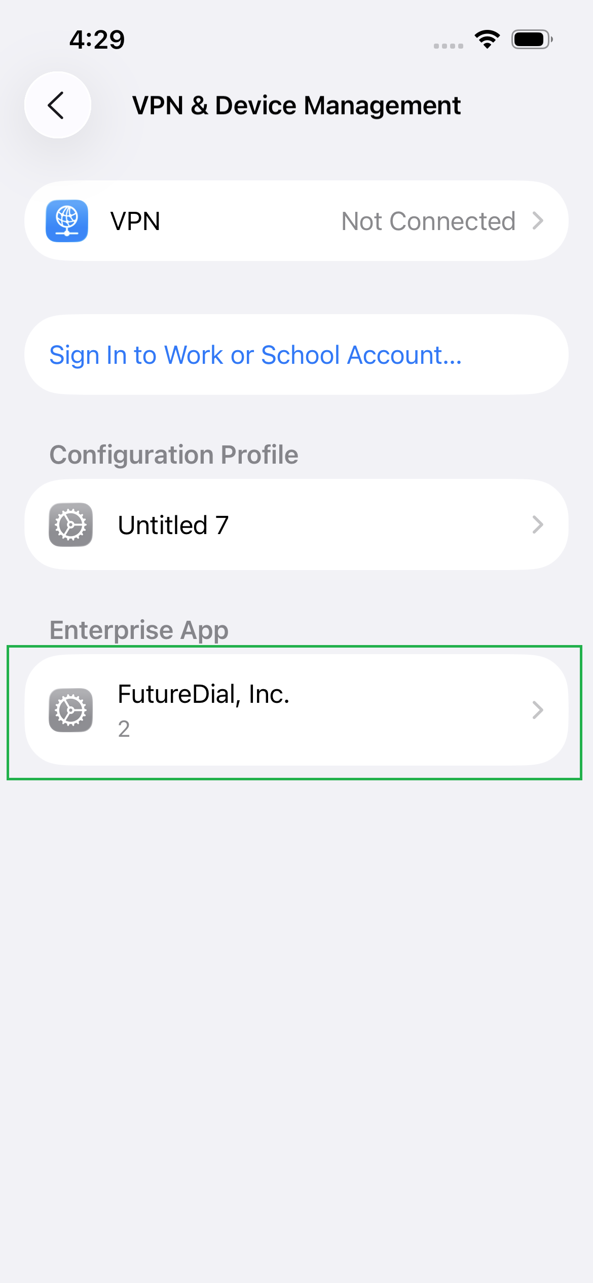 Then select VPN and device management