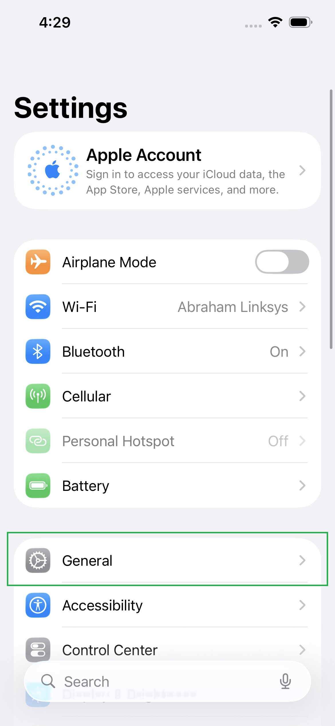 From the phone settings menu, select 'General'